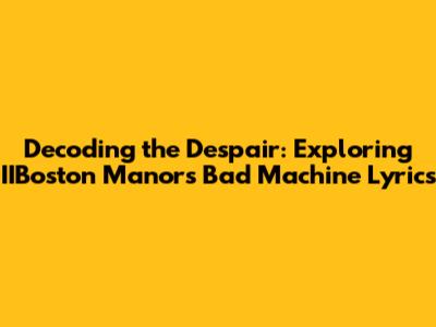 Hey music lovers! Ever get completely hooked on a song because the lyrics just hit you right in the feels? Well, today, we're diving deep into the emotional rollercoaster that is IIBoston Manor's track, "Bad Machine." This song is a powerhouse of raw emotion, tackling themes of disillusionment, self-destruction, and the struggle to break free from negative cycles. Get ready, because we're about to dissect the words, the imagery, and the overall vibe of this seriously compelling piece of music. Trust me, understanding the lyrics of "Bad Machine" is like unlocking a hidden compartment of the human experience, and guys, it's a journey well worth taking. So, grab your headphones, crank up the volume, and let's get started. We'll be breaking down the verses, the chorus, and everything in between to give you a complete picture of what makes this song so powerful and why it resonates so deeply with so many people. We'll explore the use of metaphors, the emotional weight of each line, and the overall message that IIBoston Manor is trying to convey. The song isn't just a collection of words; it's a story, a cry for help, and a reflection of the struggles that many of us face. Let's find out why the lyrics of "Bad Machine" have such a strong impact and how they are able to connect with people on such a personal level.